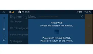 | Le seguenti schermate vengono visualizzate sul display multifunzione; è una procedura automatica e l’utente non deve fare alcuna operazione fino a quando il sistema di radionavigazione IVI non torna alla schermata principale |