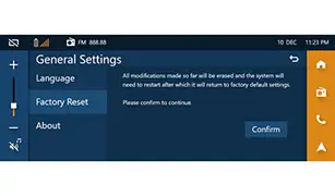 | Nella scheda "Factory Reset"Fare clic su "Confirm" per avviare il ripristino della modalità di fabbricaN.B. : La velocità del veicolo deve essere di 0 km/h durante il ripristino della modalità di fabbrica |
