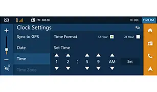 | Quando "Clock Settings" si apre, premere il tempo nell’angolo in alto a destra (tenere premuto per circa 5 secondi) fino a quando verrà mostrato "Engineering Menu" |