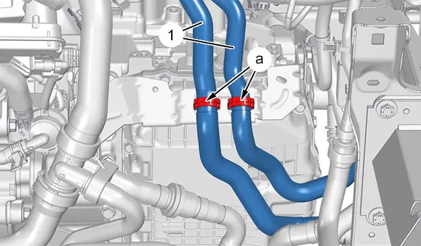 Disaccoppiare e spostare i tubi (1) del circuito di raffreddamento della catena di trazione ibrida (in "a").
