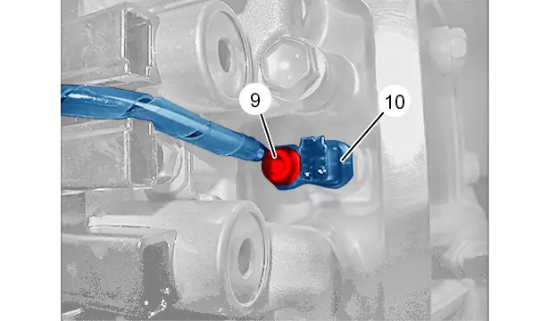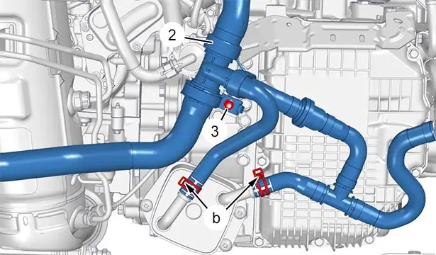 Disaccoppiare e spostare i tubi (2) del circuito di raffreddamento della catena di trazione ibrida (in "b").