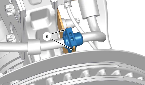 ATTENZIONE : Non disunire mai il flessibile del freno dal suo supporto in "a" : Rischio di grave deterioramento del flessibile del freno.