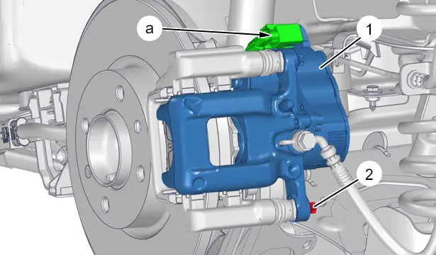 Posizionare l’insieme pinza del freno motorizzata (1) posteriore.