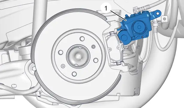 ATTENZIONE : Non ruotare il pistone della pinza del freno motorizzata (1) posteriore per spingerlo.