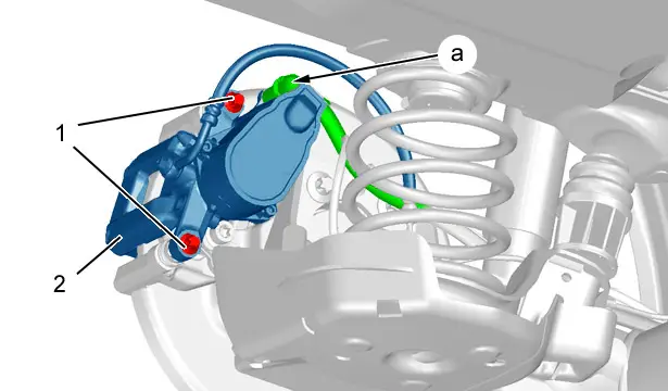 Spostare e fissare alla scocca l’insieme pinza del freno motorizzata (2) posteriore.