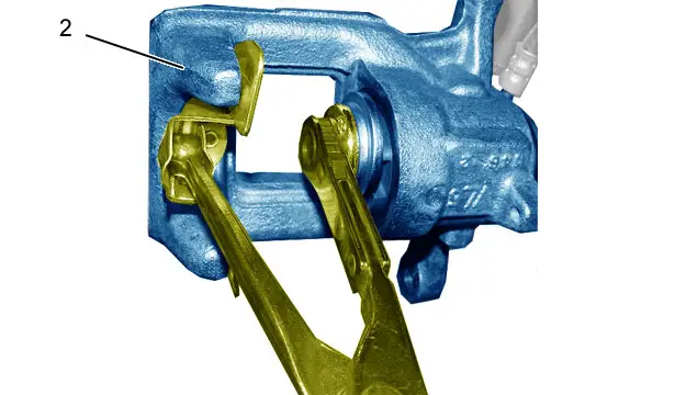 ATTENZIONE : Non ruotare il pistone della pinza del freno motorizzata (2) posteriore per spingerlo.