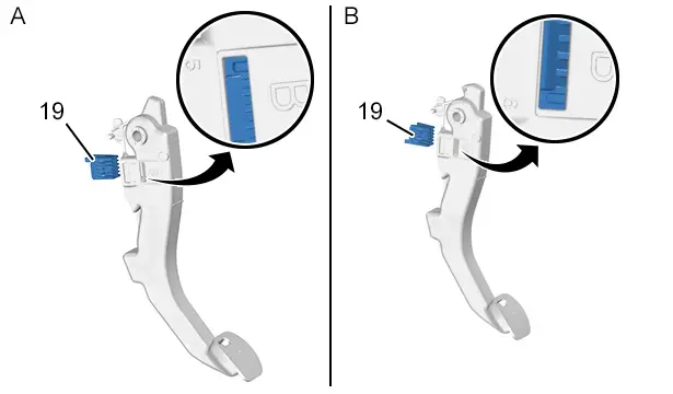 Togliere la molletta di bloccaggio (16) dalla pedaliera ; Con una paletta in plastica.