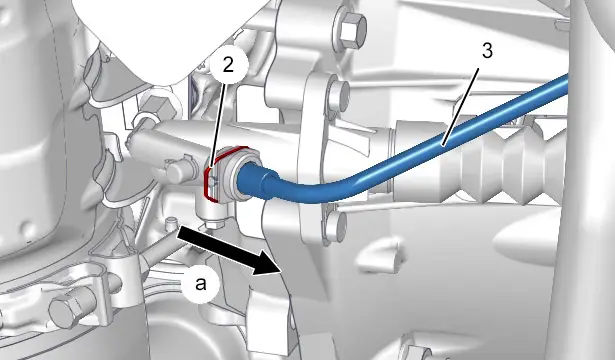 Bloccare il cilindro emettitore del comando idraulico della frizione (14) (Ruotare in un ottavo di giro in senso antiorario).