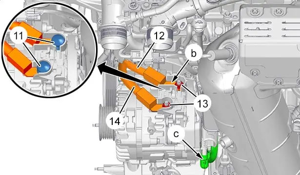 Scollegare il connettore del motorino d’avviamento 48 V(in "c").