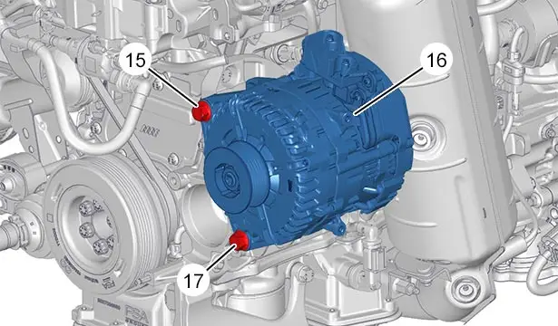NOTA : Per staccare gli anelli di centraggio dal motorino d’avviamento (16) a 48 V, picchiettare la testa dei bulloni ; Con un martello.