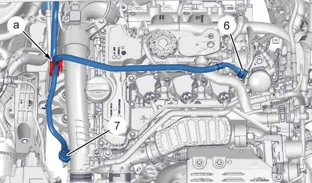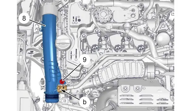 Disaccoppiare il tubo di riaspirazione dei vapori del carburante (in "b").