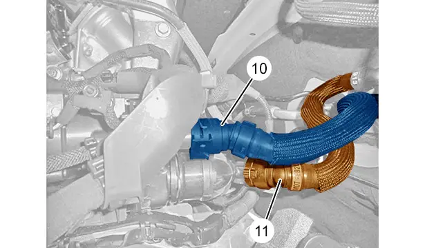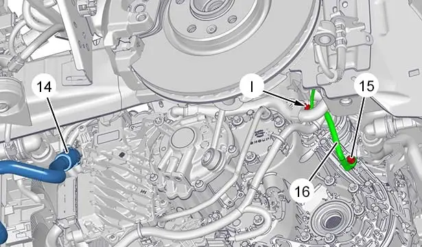 Disaccoppiare il tubo (14) del circuito di raffreddamento della catena di trazione ibrida.