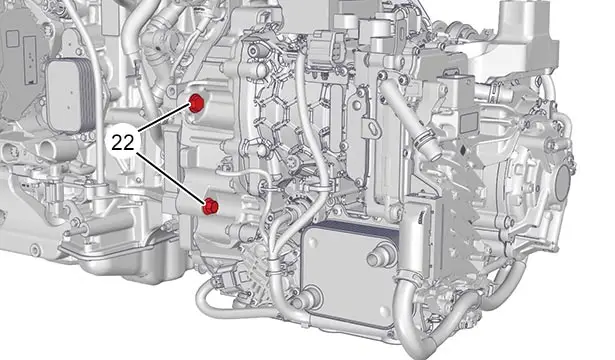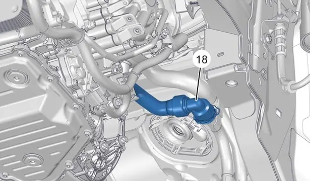 Disaccoppiare il tubo (18) del circuito di raffreddamento della catena di trazione ibrida.
