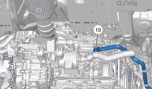 Disaccoppiare il tubo (19) del circuito di raffreddamento della catena di trazione ibrida.