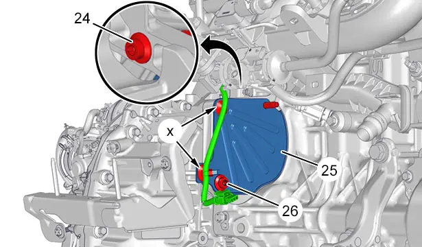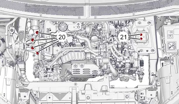ATTENZIONE : Controllare l’assenza di contatto tra l’insieme motore - cambio manuale pilotato a doppia frizione ibrida e la carrozzeria.