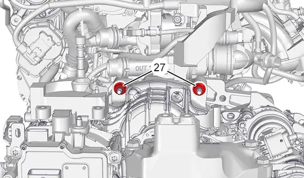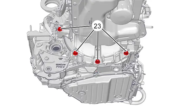 Smontare il motore - cambio manuale pilotato a doppia frizione ibrida da sotto il veicolo (Con precauzione).