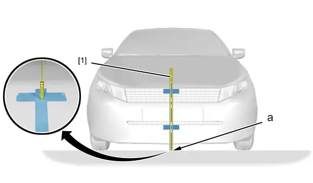 Posizionare un filo a piombo [1] al centro del veicolo ; Utilizzando un adesivo (Utilizzare il centro del monogramma).