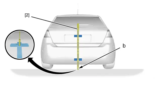 Posizionare un filo a piombo [2] al centro del veicolo ; Utilizzando un adesivo (Utilizzare il centro del portellone).