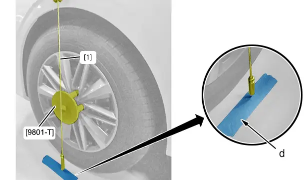Posizionare l’attrezzo [9801-T] sui bulloni della ruota posteriore sinistra.