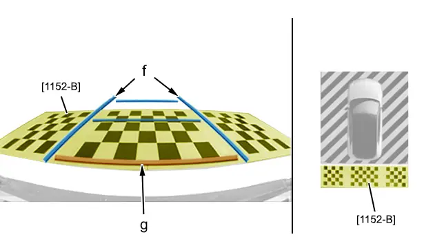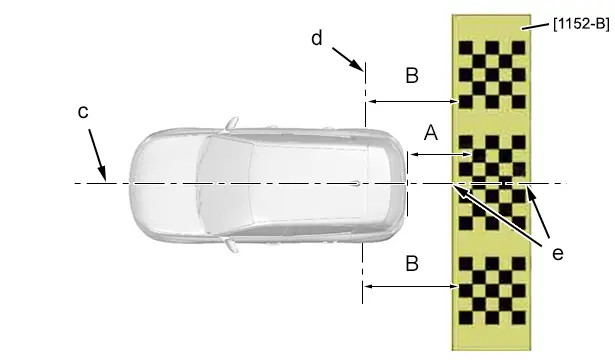 Posizionare il riferimento di calibrazione [1152-B] a terra nella parte posteriore del veicolo (Secondo la quota "A").