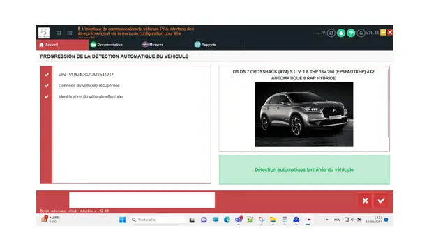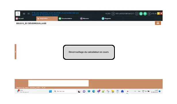 Quando la procedura è avviata, lo strumento di diagnosi DIAGBOX esegue la fase (BSI1 / VSM1) di sbloccaggio dell’interfaccia del calcolatore elettronico di gestione.