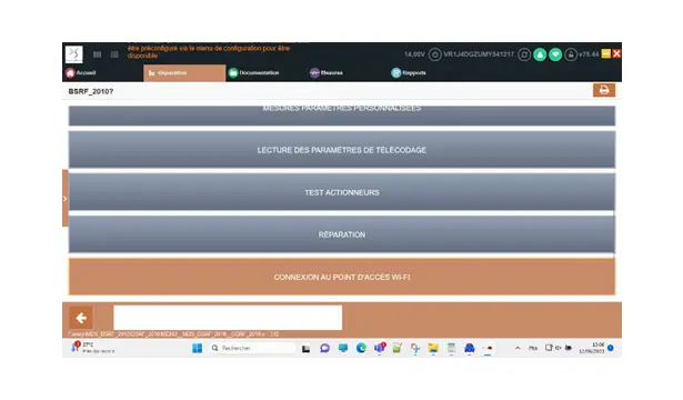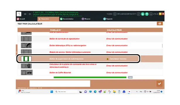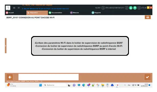 Appena l’interfaccia del calcolatore elettronico di gestione (BSI1 / VSM1) viene sbloccata, lo strumento di diagnosi DIAGBOX mostra un’interfaccia che elenca i passaggi da seguire per connettere il modulo di connettività della radiofrequenza (BSRF / RTBM) a Internet.