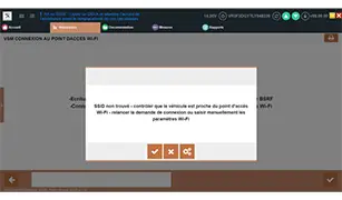 | I parametri di connessione sono corretti ma lo strumento di diagnosi DIAGBOX è scollegato dal punto di accesso Wi-FiLo strumento di diagnosi DIAGBOX mostra il messaggio "controllare la misura parametro "potenza segnale Wi-Fi" e il valore è 70% o superioreUna volta confermata la finestra pop-up, la procedura viene abbandonata |